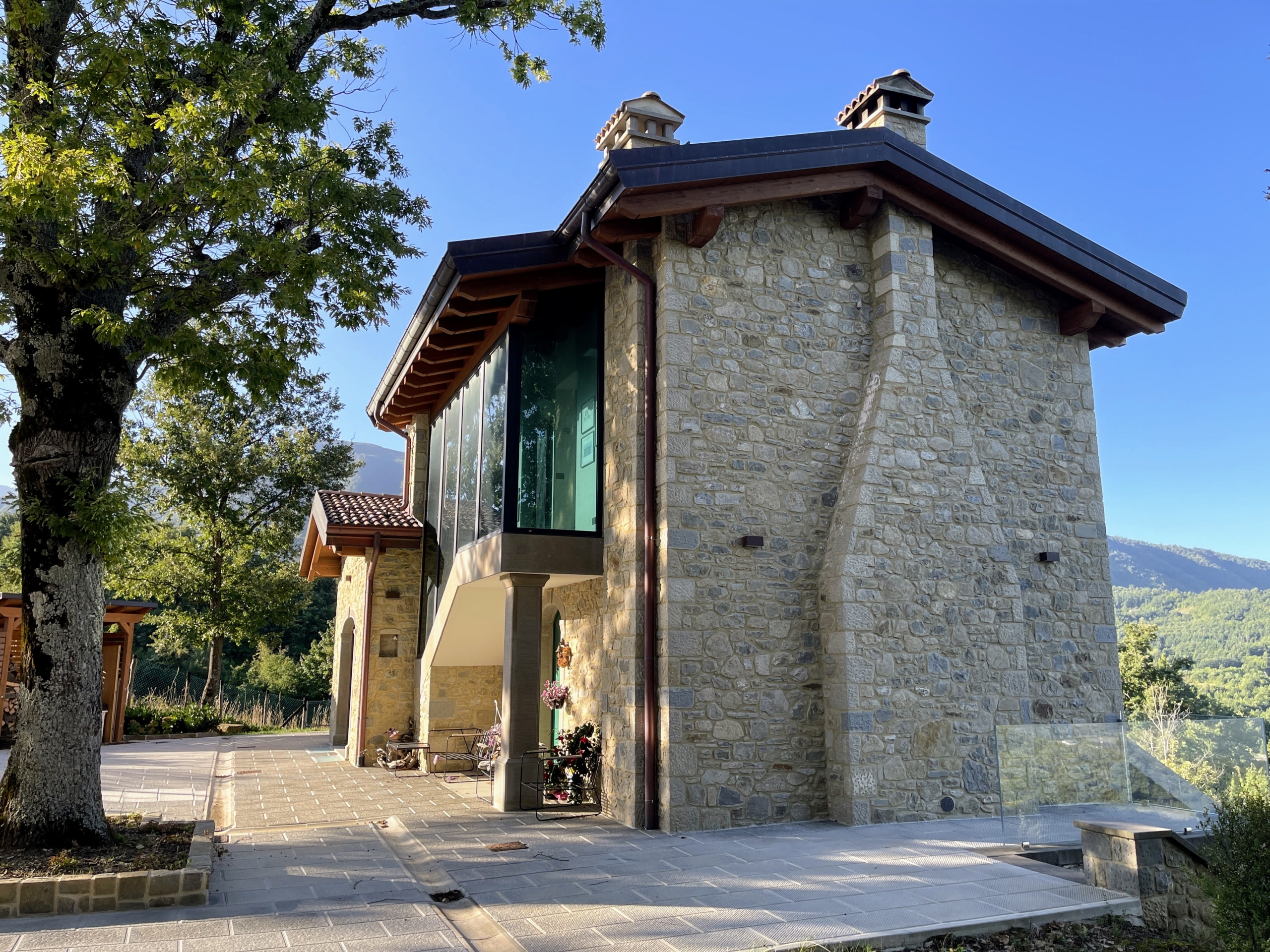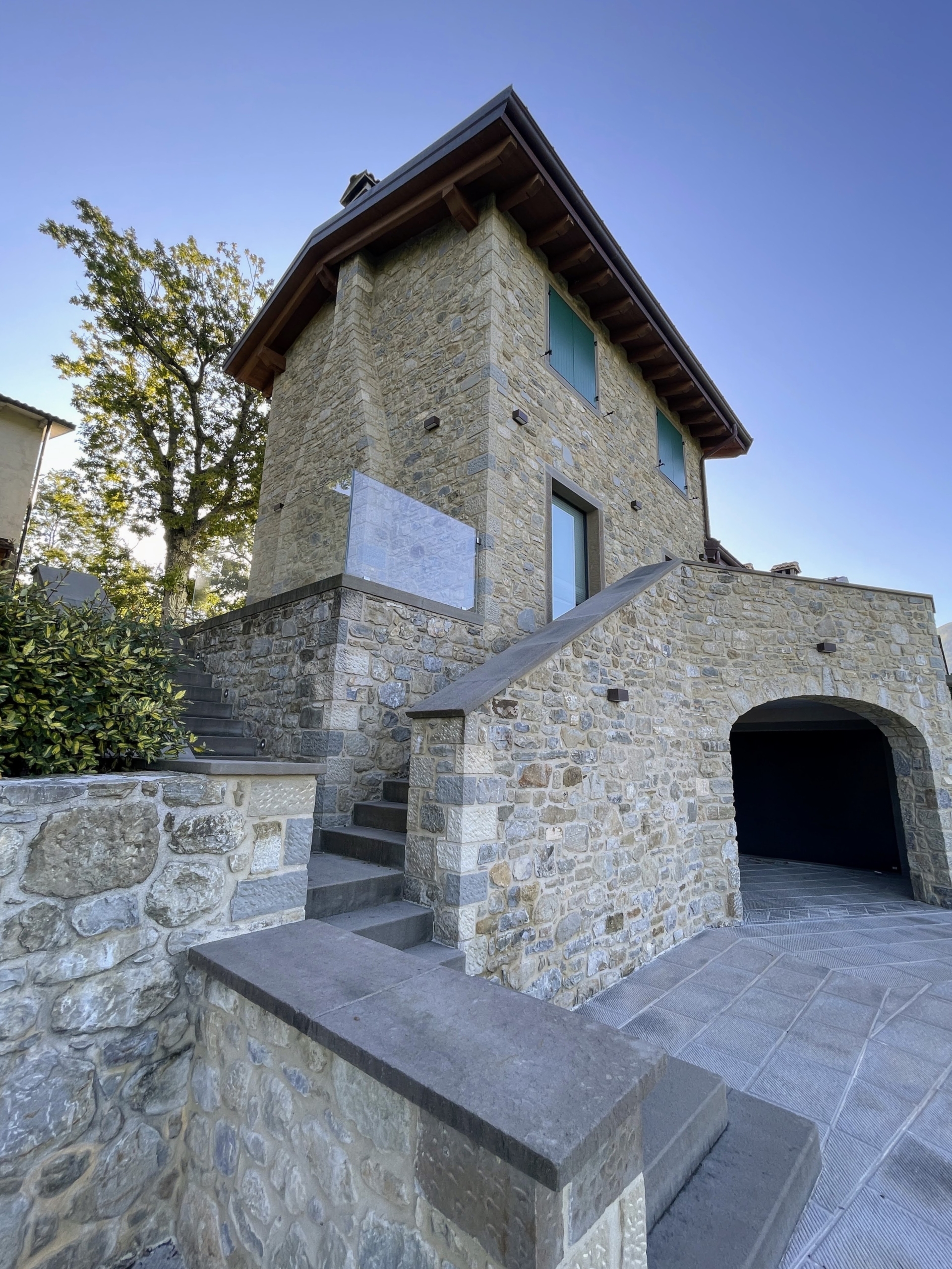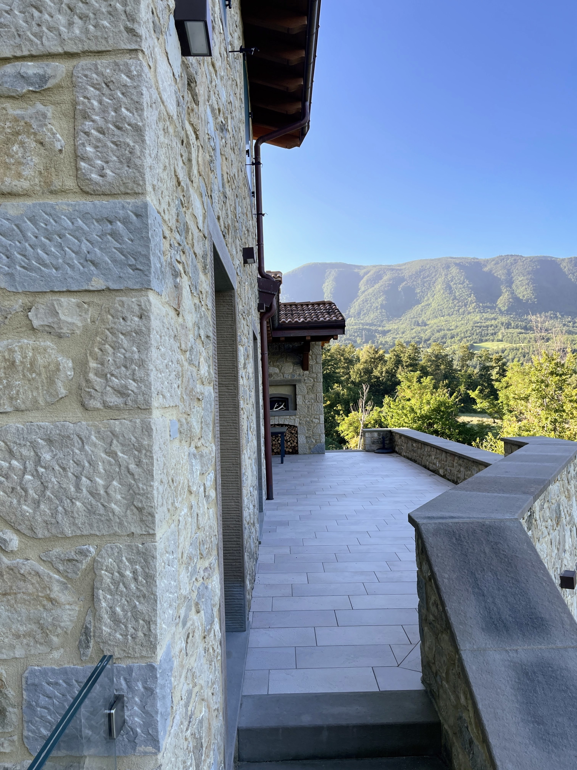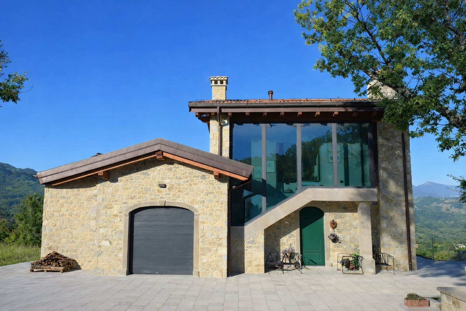 Edificio residenziale in pietra, dove la tradizione incontra il panorama dell’appennino tosco-emiliano.